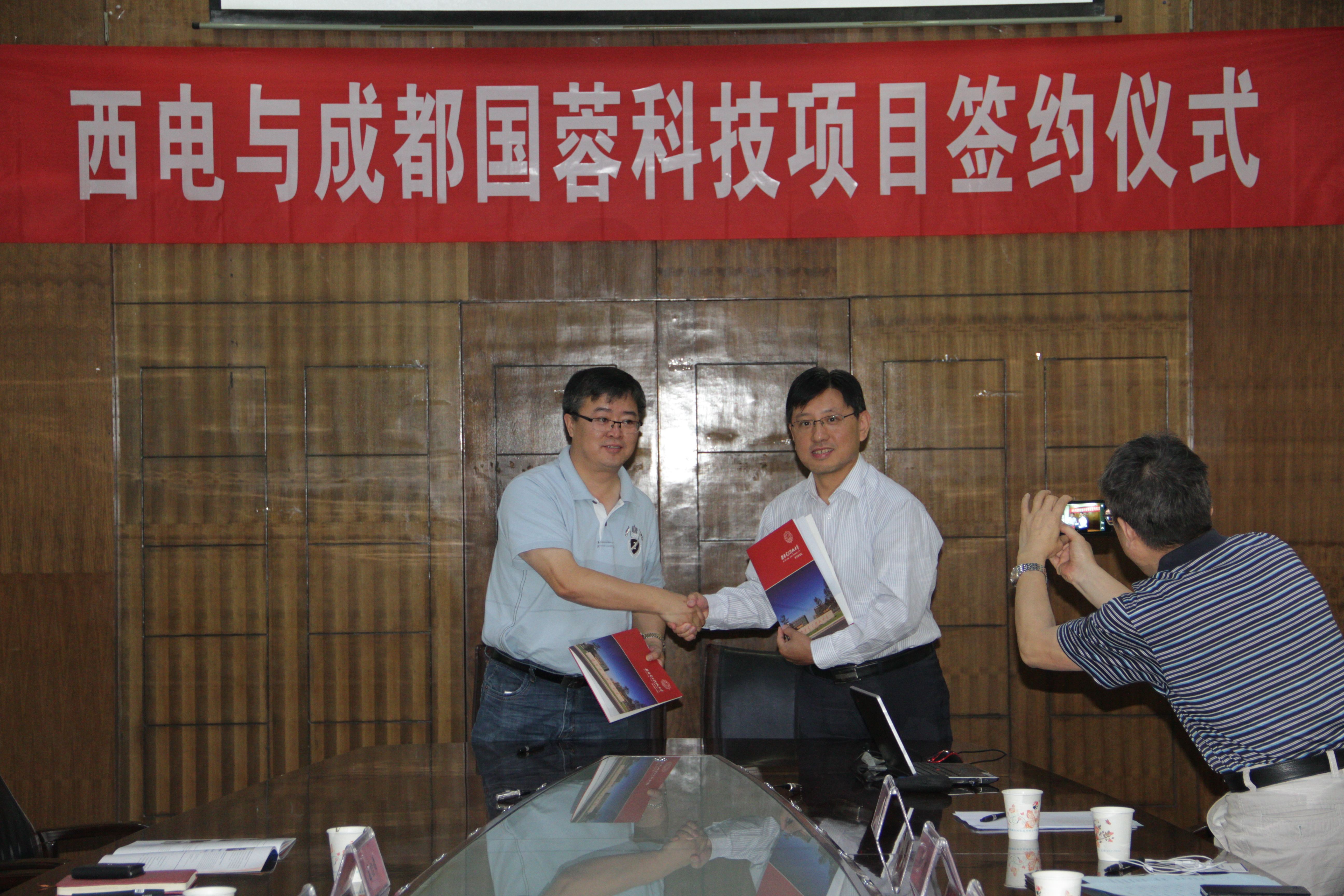 (通讯员 葛持恒)5月26日上午,华讯方舟副总裁/成都国蓉科技有限公司党委书记贺和平一行到体育365官网洽谈交流合作并与公司签订项目合作协议,体育365官网经理仇原鹰、公司党委书记林松涛、科研院科研成果管理办公室主任许权利、西电电工电子教学基地中心副主任周佳社、课题负责人王水平,公司办公室副主任葛持恒参加了座谈会。座谈会由体育365官网科研副经理黄进主持。