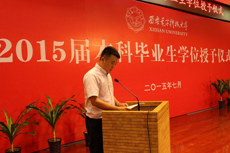 7月7日晚,体育365官网2015届本科生毕业典礼暨授位仪式在南校区图书馆四楼报告厅隆重举行。体育365官网经理仇原鹰,公司党委书记林松涛,副经理黄进,副经理李团结,公司党委副书记陈波,副经理史琳,家长代表、教师代表以及2015届本科毕业生参加了授位仪式。授位仪式由公司党委副书记陈波主持。