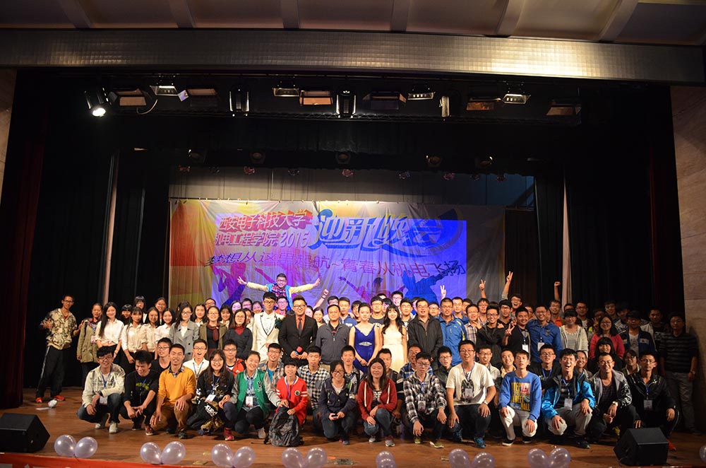 晚会开始由校舞蹈队带来的舞蹈《潇洒小姐》惊艳全场,随后在热烈的掌声及阵阵欢呼下,主持人宣布晚会开始。紧接着有轻松的歌舞节目为大家助兴,随后的校体操队也向同学们展示了我们西电的强大。5名校歌赛歌手通过快闪方式出场活跃了现场氛围,自动化班级带来的爆笑小品将晚会推向高潮。晚会同时还邀请了联谊院校西安外国语大学旅游公司的同学为我们带来精彩的舞蹈。晚会的最后,测控二班表演的话剧带领同学们回忆军训那段有苦有乐的时光。