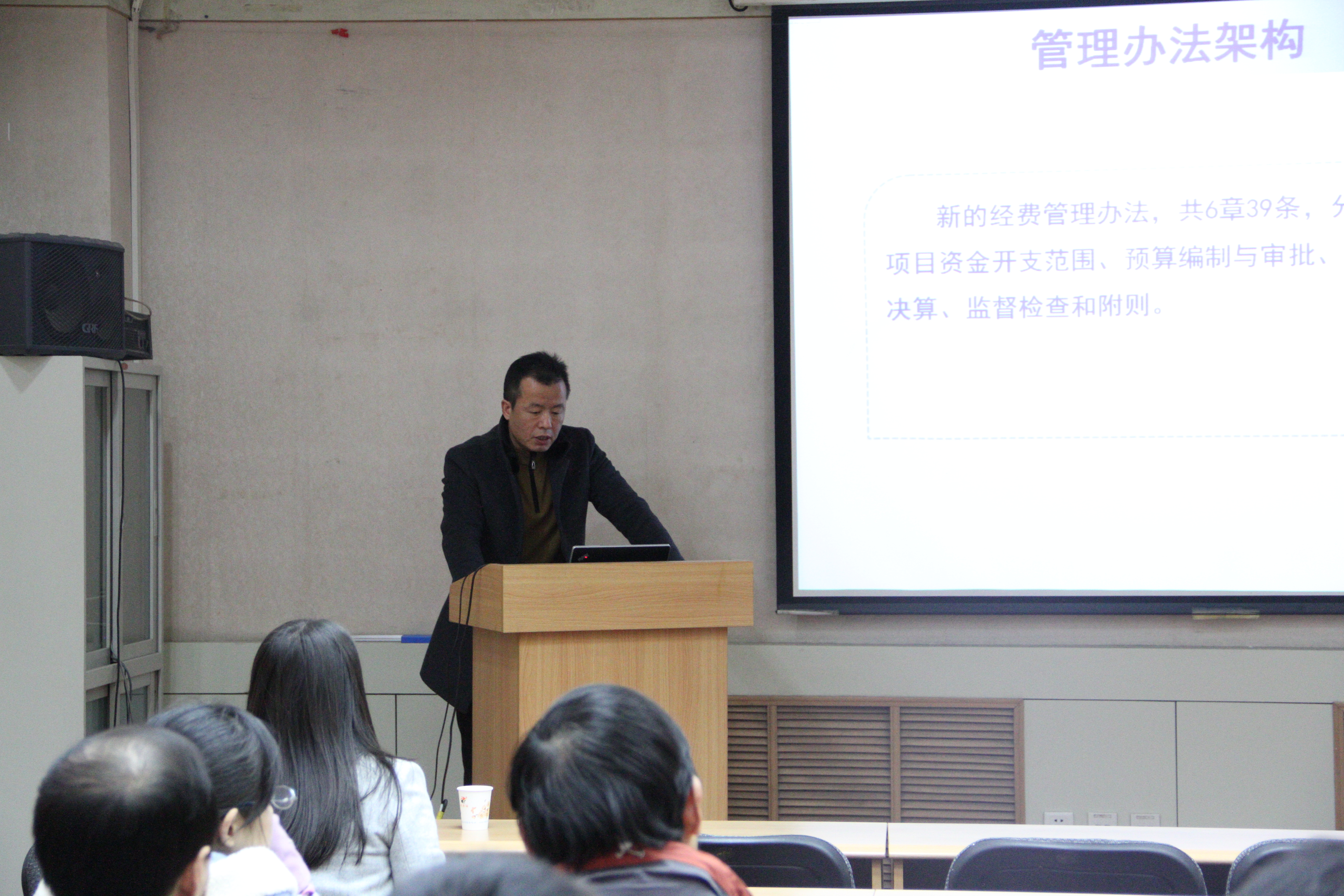 张都应副处长首先详细地讲解了2016年基金申报的政策变化,并做了《资金管理办法》具体条款解读报告,着重强调了经费预算的重要性。然后就专家评审、基金申请经验等提出了自己的独到的见解。