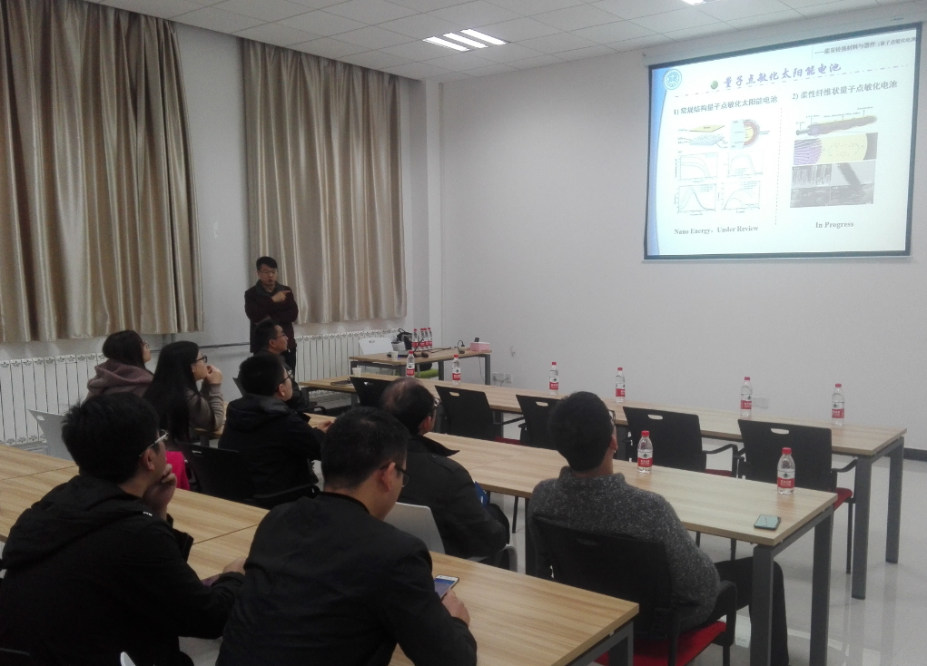 2017年11月16日上午9:30,彭尚龙教授在公司北校区III-143会议室作了题为“柔性可穿戴能量转换与储存器件”的报告,报告会由樊康旗副教授主持。