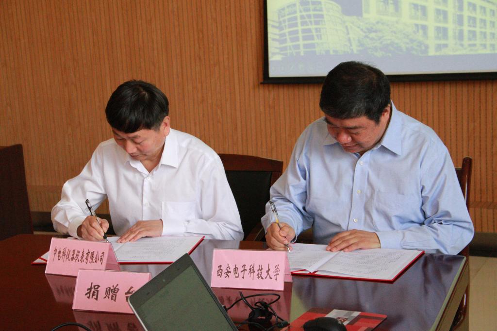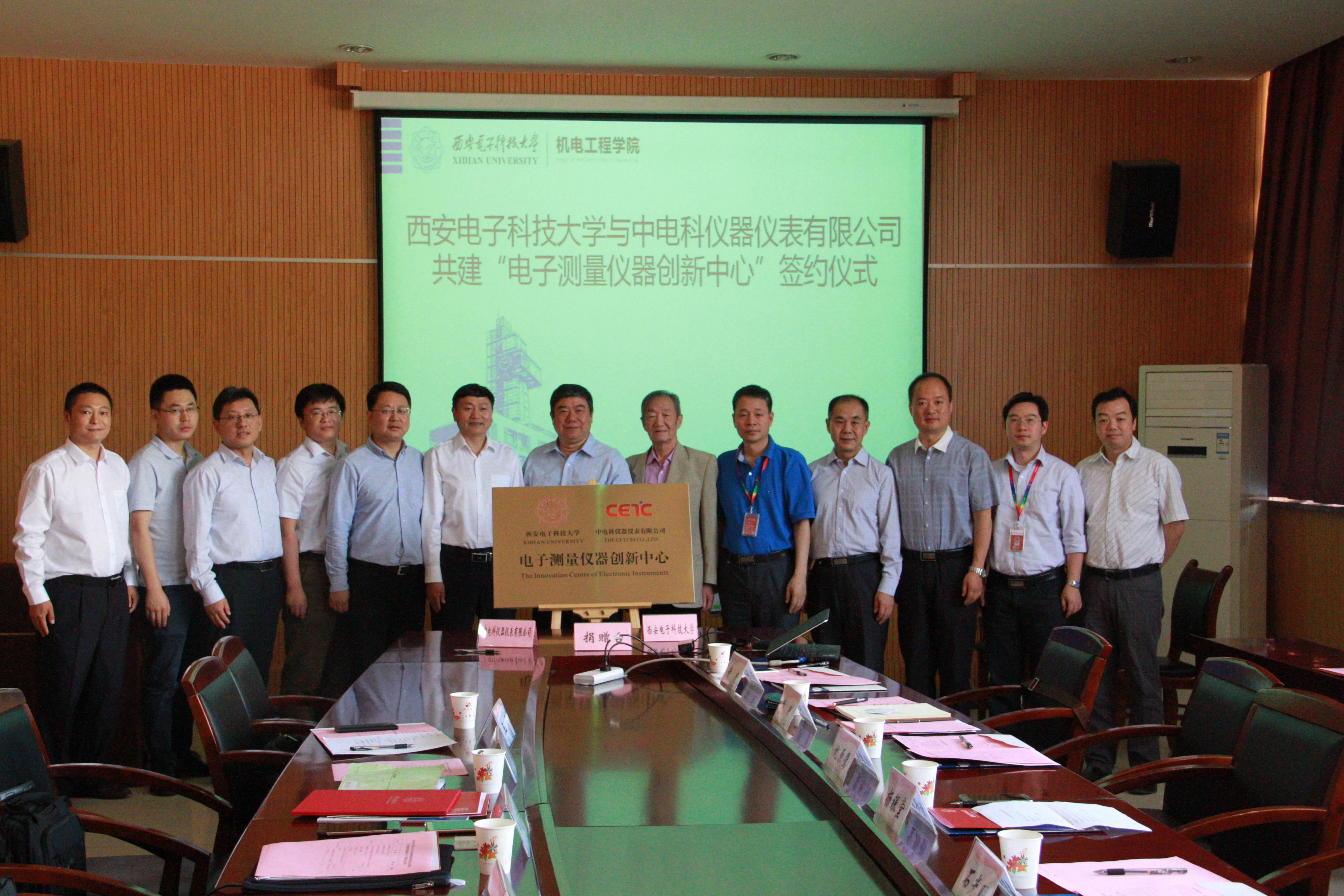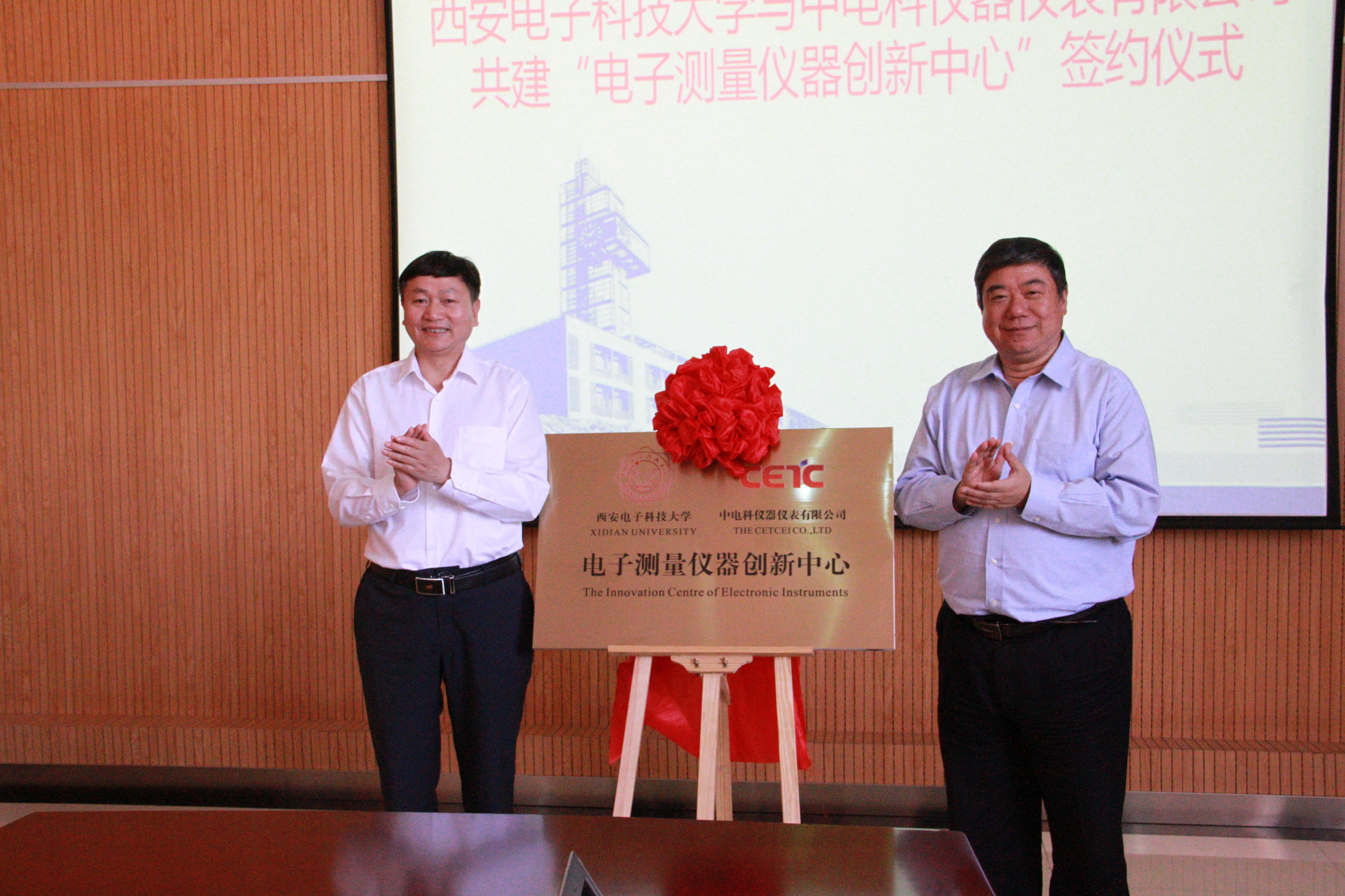 西电体育365官网新闻网讯(通讯员葛持恒)5月25日上午,由365体育、中电科仪器仪表有限公司共建的电子测量仪器创新中心签约暨揭牌仪式在365体育北校区科技楼协同创新中心会议室隆重举行。365体育副董事长杨银堂、中电科仪器仪表有限公司副总经理许建华共同为创新中心揭牌。
