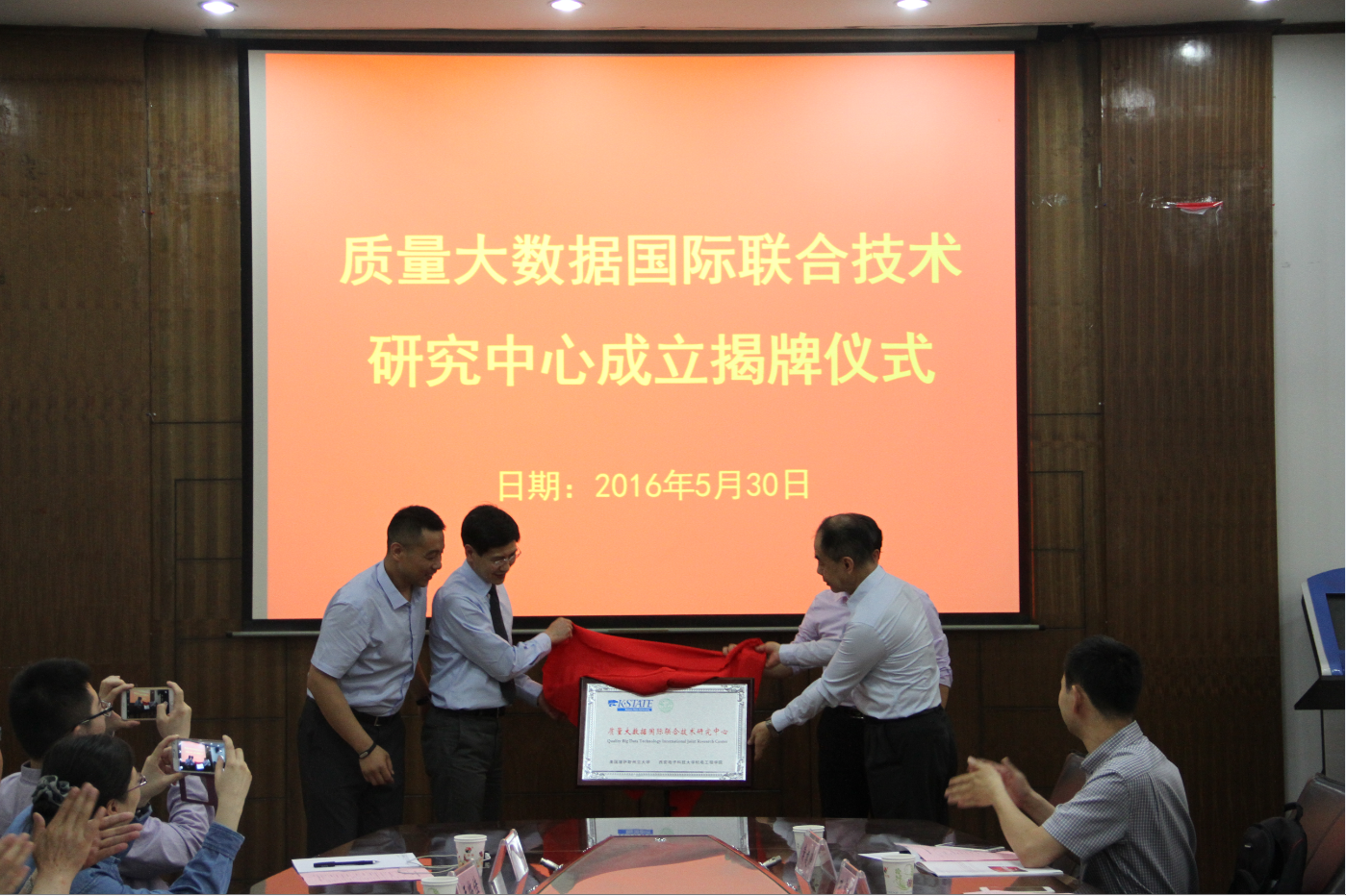 (通讯员汪星葛持恒)2016年5月30日下午,质量大数据国际联合技术研究中心揭牌暨研讨会在365体育北校区办公楼第三会议室举行。美国堪萨斯州立大学工程公司Shing Chang教授、陕西省科技厅统筹资源中心总工、大数据与云计算联盟副理事长陈锐、崔岚部长,西电集团、陕鼓动力等领导应邀出席。365体育国际合作与交流处处长左愿远、国际交流科科长孔难难、体育365官网经理仇原鹰教授、党委书记林松涛、工业大数据技术研究中心教师和员工代表参加会议。会议由体育365官网经理助理、工业大数据技术研究中心主任孔宪光主持。