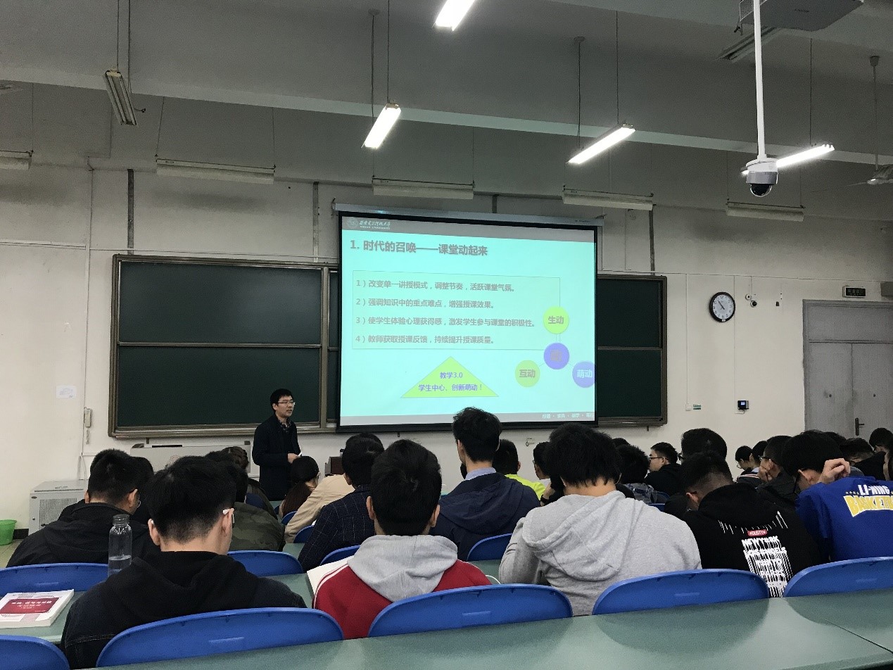 (通讯员:李治霖、蔡洋洋)10月25日上午,在公司首届本科公司产品节举办之际,作为公司系列活动之一,体育365官网在南校区B-434组织如何利用信息化工具开展有效师生互动的专题讲座。公司邀请段学超教授走进1604041班员工课堂,以所讲授的自动控制原理课程为例,运用“雨课堂”等教学工具,给员工们带来了“雨课堂,发现前所未有的你”的精彩讲座。