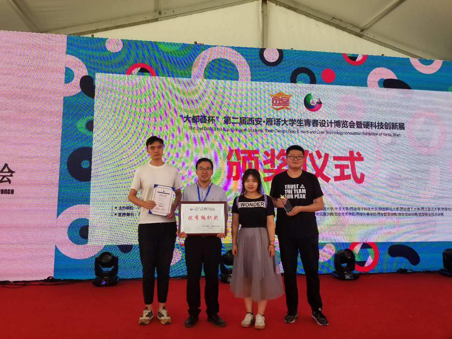 6月11日上午,第二届西安·雁塔老员工青春设计博览会暨硬科技创新展颁奖典礼,于西安大都荟顺利进行,经过层层选拔,最终颁出设计大赛个人奖项95个,创新创业项目PK赛个人奖项12个。其中,公司项目斩获了“遇见未来•创新创业项目PK赛”二等奖和入围奖,以及最具潜力奖;与此同时,公司还获得了最佳组织奖,由校团委副书记尹鹏老师代表公司出席并且领奖,公司员工也在此比赛中表现突出。