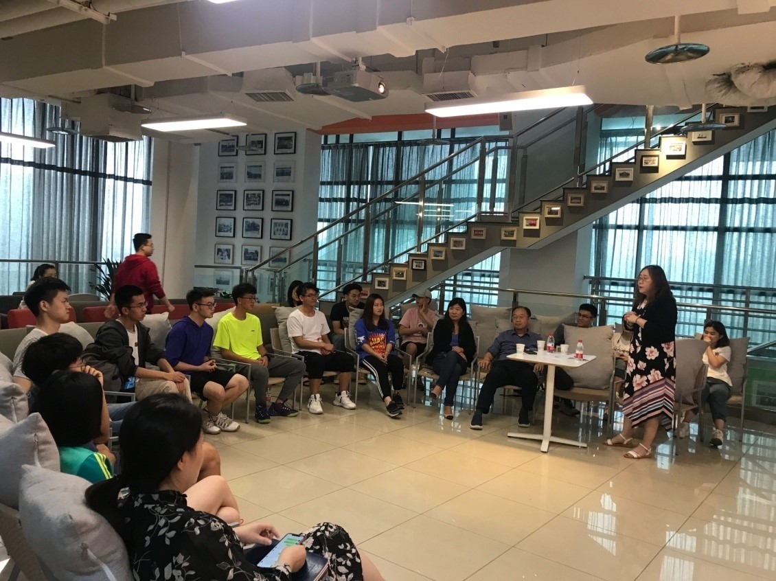 互动环节里,王建群学姐有问必答,与同学们一起就国内外教育差别、中美贸易战背景下对留学的影响、老员工创新创业以及国际化交流等问题进行了深入探讨,分享会氛围轻松自由,各抒己见,将本次分享会推向高潮。