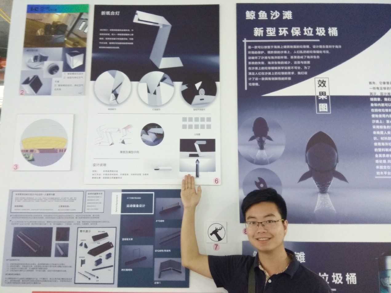 本届博览会共邀请包括公司在内的13所辖区内高校和3所辖区外高校参加,作品涉及平面设计、工业设计、建筑设计、工艺美术、服装设计、影视制作、雕塑装置等七大门类,涵盖科技创新、生活创意、文化艺术、城市景观等多个领域。为做好本次博览会各项工作,校团委、创新创业公司联合体育365官网工业设计系、员工文创团队共提交作品51件,在活动期间以展板和实物的形式进行现场展览。