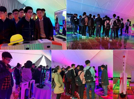 接下来在2号科技展示区,随着张磊的导向性介绍,同学们仔细观看了人脸识别技术、机器人研发平台、区块链技术、高性能射频天线等多种科技产品,这些设备在技术方面都处于领先地位,希望同学们能积极利用好这个平台,增强学习信心,编织专业梦想和科技梦想。