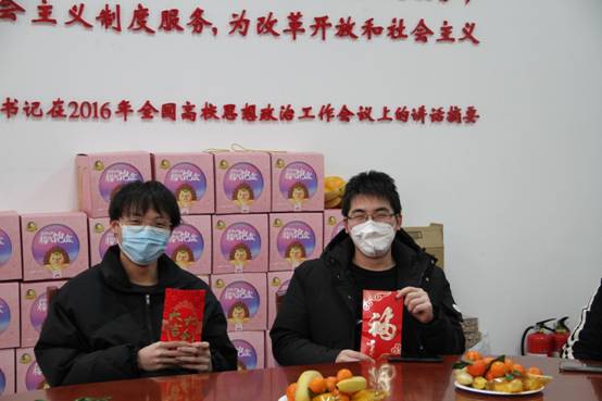 茶话会后大家合影留念,公司领导为全体留校的同学送上关怀,发放了春节慰问品。