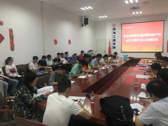随后,与会的师生党支部书记纷纷发言分享学习感受。机电所党支部书记段学超表示,习近平总书记的重要讲话振奋人心,党的百年成就彪炳史册,举世瞩目,我们要以史为鉴、开创未来,铭记奋斗历程担当历史使命,从党的奋斗历史中汲取力量,扎实推进科技创新、人才培养本职工作。工设电封系员工党支部书记、辅导员陈朝晖分享了组织员工党员观看的体会,他说:“虽然员工党员第二天有考试,但大家还是一早就在会场坐好等候观看。总书记的讲话让人激动万分,一些员工党员听完后热泪盈眶,纷纷感叹党的先辈们创业之艰难,也为如今党带领人民走向伟大复兴取得的荣誉感到自豪!”机电所第一党支部书记高翔表示:“观看完庆祝大会,同学们感悟颇深。中国工程院院士、公司党委委员段宝岩结合自身留学、工作经历,分享了他对党领导全国人民富国、强军、利民的切身感悟。我们青年党员要将青春奋斗融入党的伟大事业,响应习近平总书记的号召,做不负时代、不负韶华、不负党和人民热切希望的西电青年。”