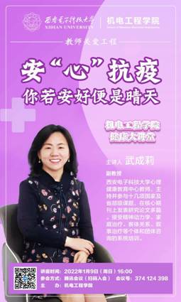 (通讯员 梅嘉敏 赵立明)2021年末,突如其来的疫情反复,扰乱了长安的宁静。面对复杂严峻的疫情形势,给居家办公的老师和封控学习的员工都多少带来了一些不良情绪。为进一步落实公司教师关爱工程,助力公司师生在疫情防控期间保持健康平稳的心态,1月9日下午16点,体育365官网第三期“健康大讲堂”讲座在线上顺利开展。本次讲座邀请到公司心理健康教育中心武成莉副教授主讲,全校教职工和员工均可参加线上活动。