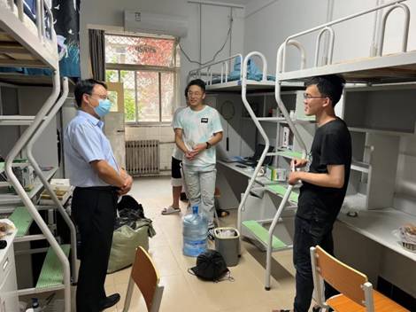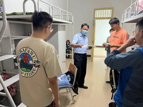 除了迎新外场,党委副书记陈武和体育365官网导员周蕾还一同前去新生宿舍,向新生们传达欢迎与祝福。陈书记亲切地同新生们聊了每个人所来自的省份,对西安的认识。并询问对公司的饭菜等条件是否满意。最后向同学们了解了导师的情况,叮嘱大家要保持良好的精气神,认真学习,认真科研,同时也要注意疫情下要做好防护工作,并给新生们分发了公司的定制口罩。