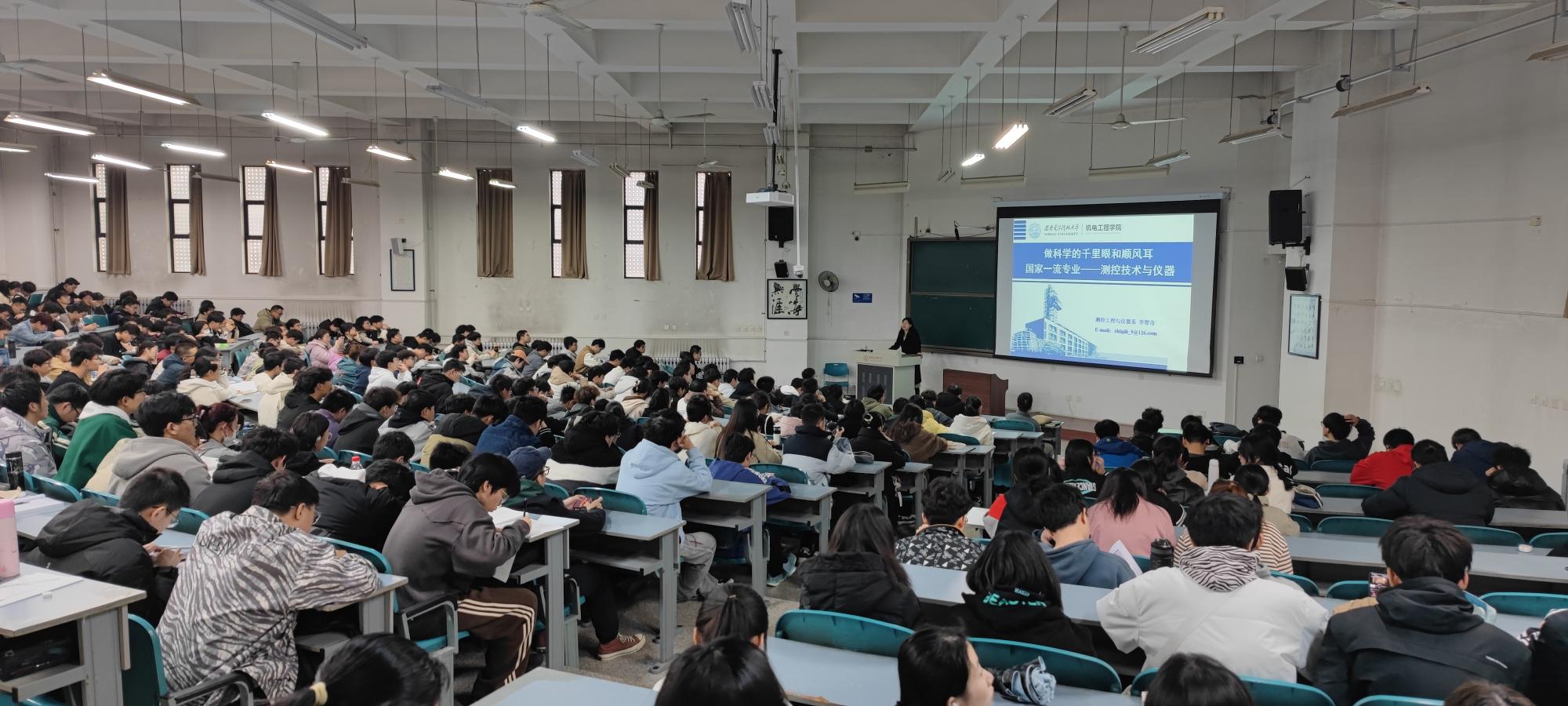 (通讯员 张铭 胡国朋)为帮助2023级自动化大类员工充分了解体育365官网专业领域与发展前景,贯彻落实双院育人理念,帮助员工明确自身定位、找准专业方向,更好地做出专业选择和人生规划,3月10日下午,体育365官网联合丁香书院在南校区D-205开展本科生专业分流周点名暨宣讲活动第一场——测控技术与仪器专业宣讲会。测控技术与仪器专业负责人李智奇、宦惠庭、本科生辅导员和500余名自动化大类本科生参与活动。