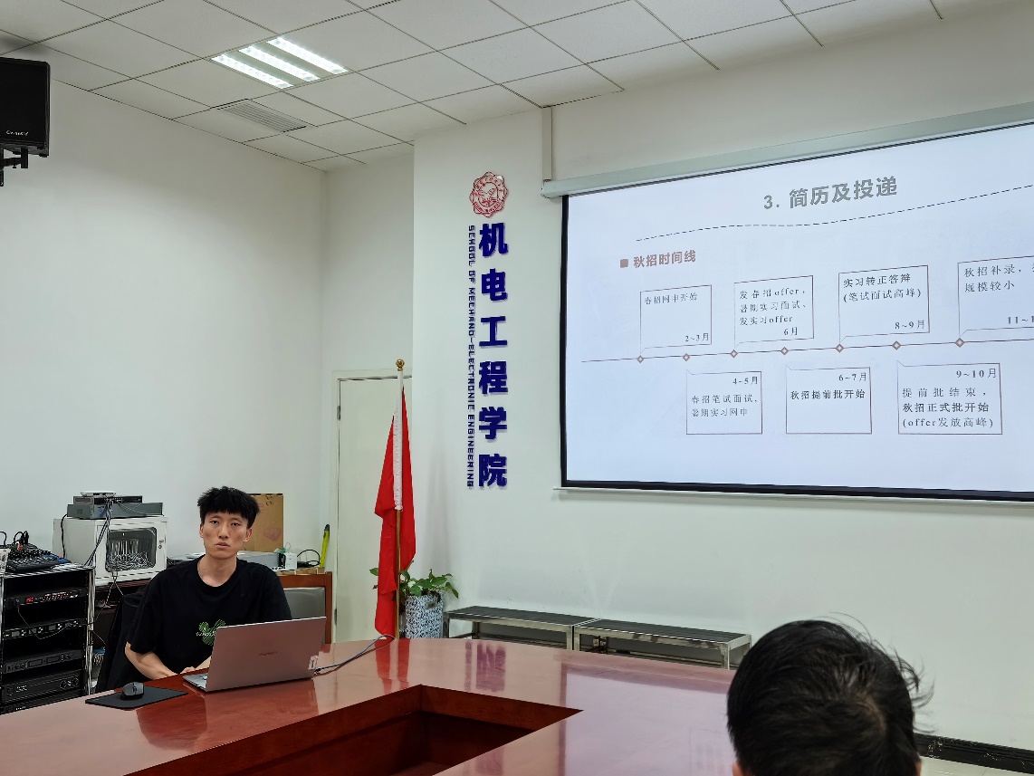 李腾浩号在求职过程的总体层面进行分享,包括提前准备和制作简历、搜索招聘信息、了解目标岗位所需技能等。郭振宇、官腾分别分享了在求职过程中的简历制作、招聘信息汇总以及面试技巧等方面的内容,并强调了持续学习和自我提升的重要性,并鼓励师弟师妹们在未来的职业生涯中保持好奇心和探索精神。袁炀博、王学子分享了如何准备海外留学、公考等方面的经验。