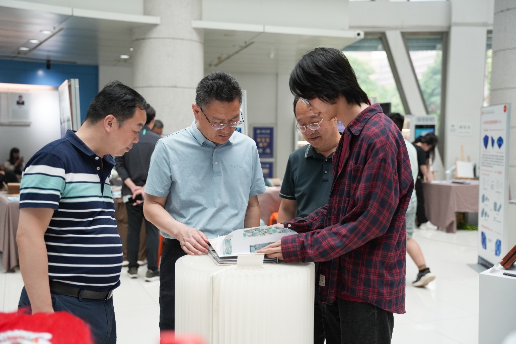 在陈晓龙及工业设计系教师代表陪同解说下,参会人员详细参观展区各类作品,对展品展现出的创新意识与员工的实践能力给予高度赞扬。本次展览特别设置了投票环节,投票前十名作品将进入闭幕式优秀毕设设计作品评选答辩环节。此次作品展中,还设置了体验区,体验区融合了西电文化与现代设计,观众可以更加深入的感受工业设计的魅力。