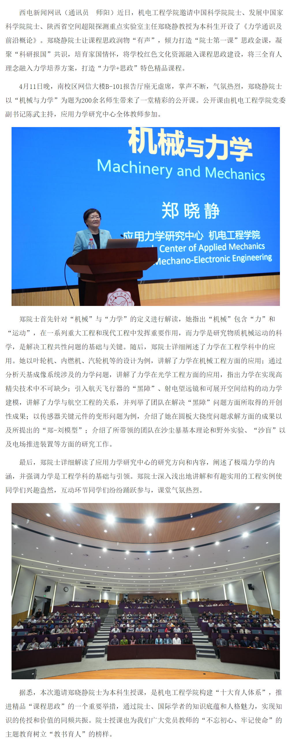 中国科公司院士郑晓静为本科生讲授力学通识课