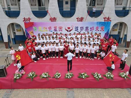 此次庆祝建党100周年文艺演出龙池镇中心小学的师生们穿着统一的文化衫进行表演,这件“永远跟党走”文化衫是由体育365官网和龙池镇中心小学的老师一起设计,体育365官网出资购买。