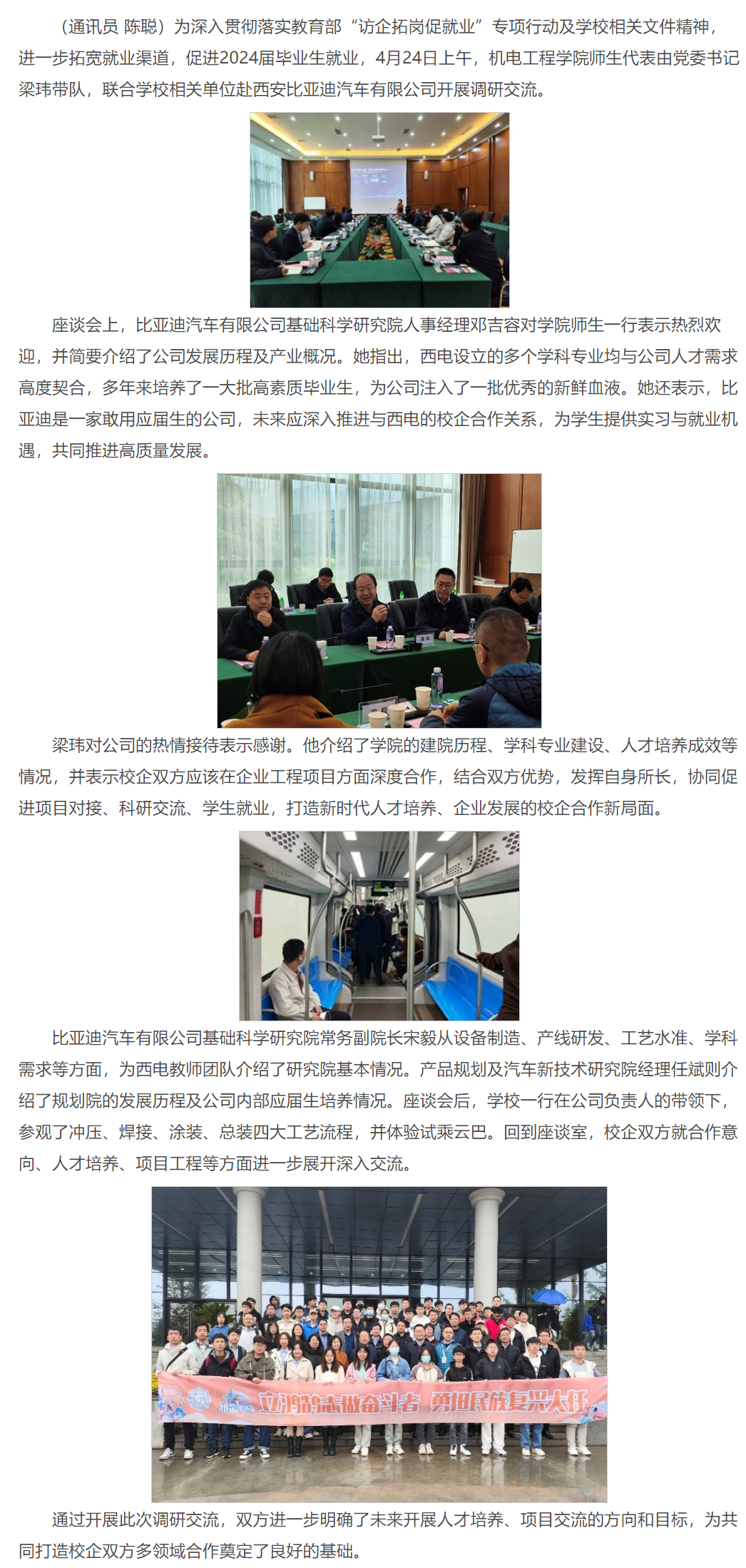 体育365官网赴西安比亚迪开展访企拓岗调研交流