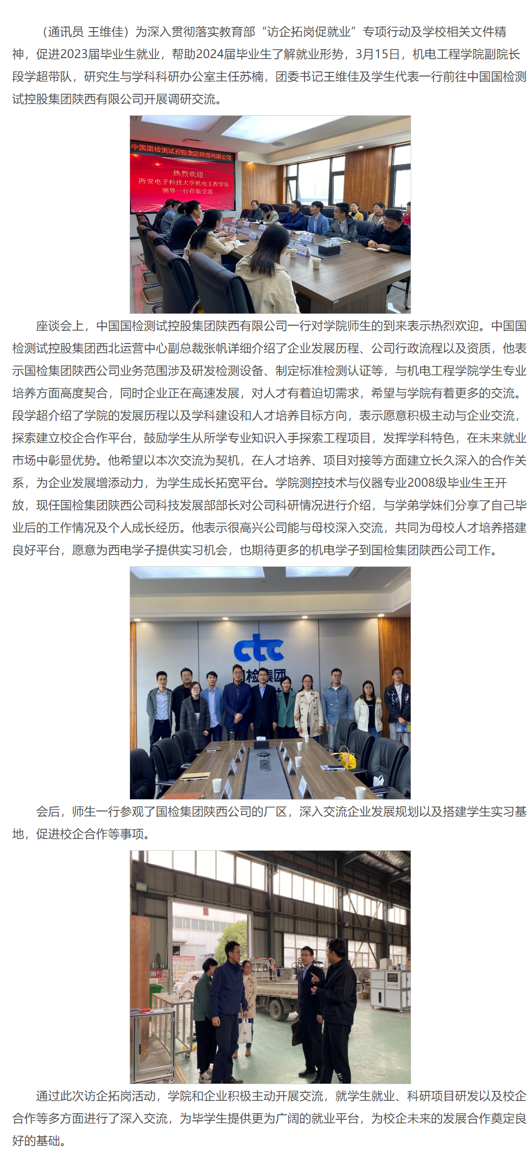 体育365官网赴中国国检测试控股集团陕西有限公司开展访企拓岗专项行动