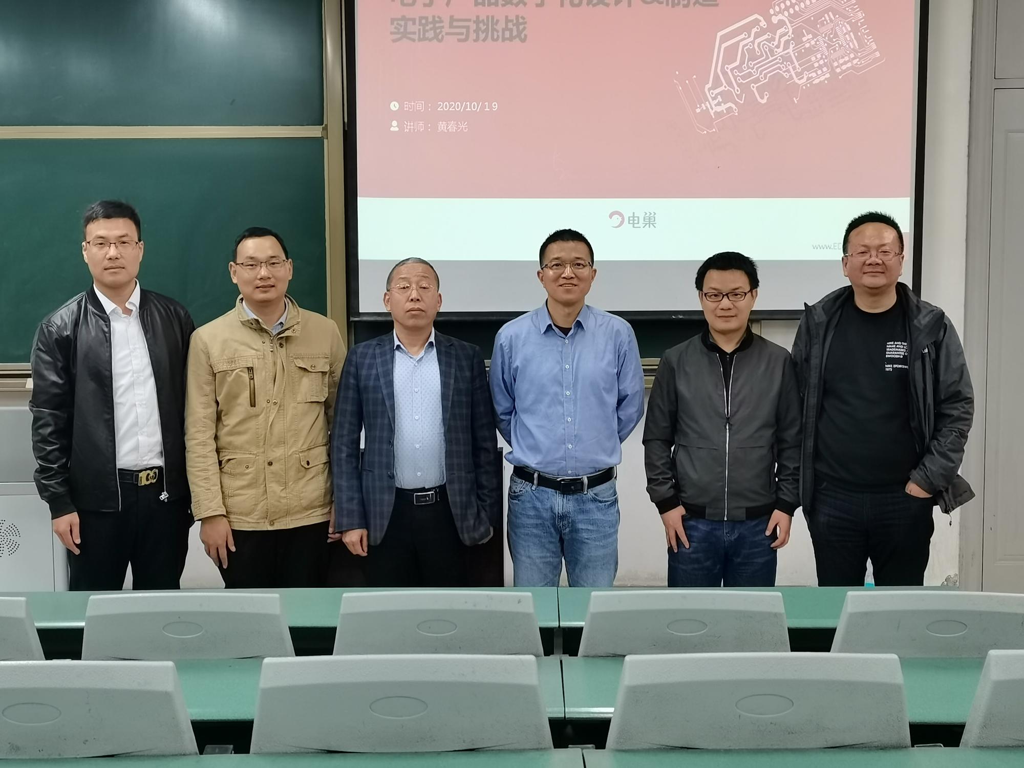 (通讯员 王永坤)2020年10月19日,上海望友信息科技有限公司总经理刘丰收,西安市电巢科技有限公司经理武建,深圳市电巢科技有限公司硬件工程工艺专家黄春光,应体育365官网公司助理王永坤的邀请,为体育365官网师生作题为“电子产品数字化设计&制造实践与挑战”的报告会,本场报告会于南校区A105教师举行,报告由王永坤主持,电子封装系主任周金柱,测控系刘岩以及电子封装系与测控系员工参加了这次报告会。