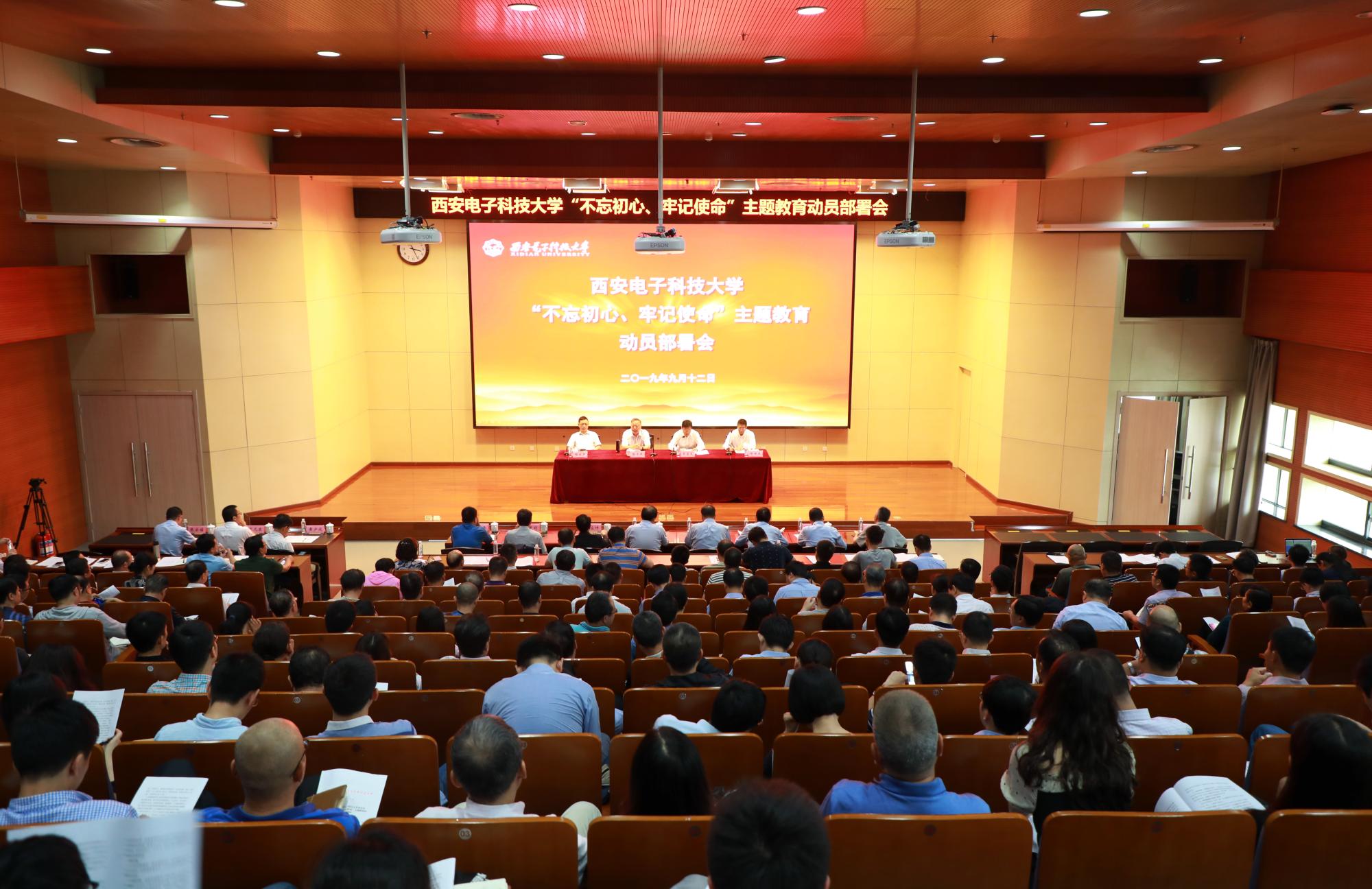西电体育365官网新闻网讯(记者 付一枫)9月12日下午,365体育“不忘初心、牢记使命”主题教育动员部署会在办公楼210报告厅举行。党委书记查显友作动员讲话,对公司开展主题教育进行安排部署。教育部直属高校“不忘初心、牢记使命”主题教育第九巡回指导组组长陈子辰在会上讲话,对公司开展主题教育提出要求。巡回指导组副组长喻世友,以及指导组其他同志到会指导。公司党委和行政领导班子成员、近期退下来的校领导、公司中层干部,以及教授党员代表、教职工党员代表和员工党员代表等,共230余人参加了会议。