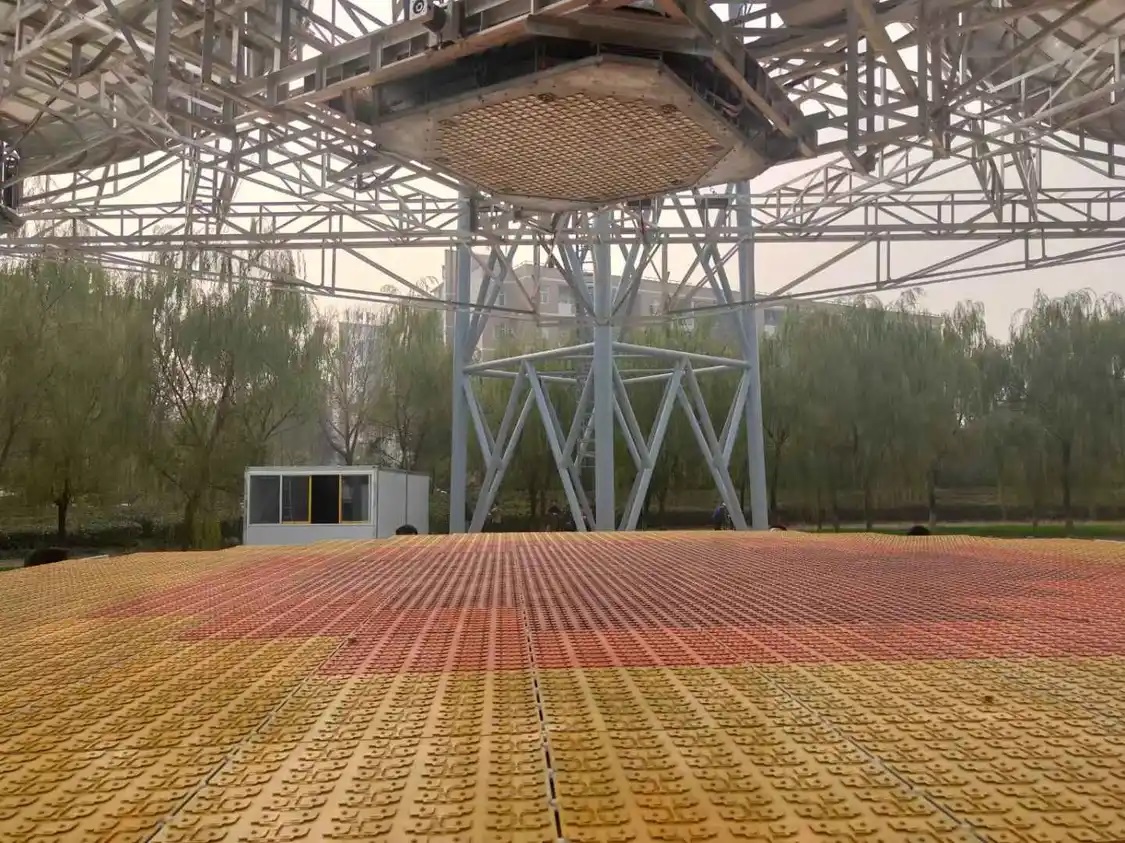 “逐日工程”空间太阳能电站地面验证系统位于西电南校区,其支撑塔为75m高的钢结构,验证系统主要包括五大子系统:欧米伽聚光与光电转换、电力传输与管理、射频发射天线、接收与整流天线、控制与测量。其工作原理,首先是根据太阳高度角确定聚光镜需要倾斜的角度,在接收到聚光镜反射的太阳光后,位于聚光镜中心的光伏电池阵,将其转化为直流电能。随后,通过电源管理模块,四个聚光系统转换得到的电能汇聚到中间发射天线,经过振荡器和放大器等模块,电能被进一步转化为微波,利用无线传输的形式发射到接收天线。最后,接收天线将微波整流再次转换成直流电,供给负载。
