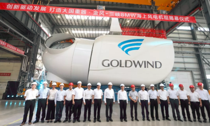 2019年9月25日,国内首台具有完全自主知识产权的国产8MW机组“金风科技8MW机组”首次亮相。相关研究“基于E-TOP技术的8MW级海上风电机组关键技术研究及示范”项目由新疆金风科技股份有限公司、新疆大学、新疆洁净能源技术研究院、乌鲁木齐市金风天翼风电有限公司共同完成。