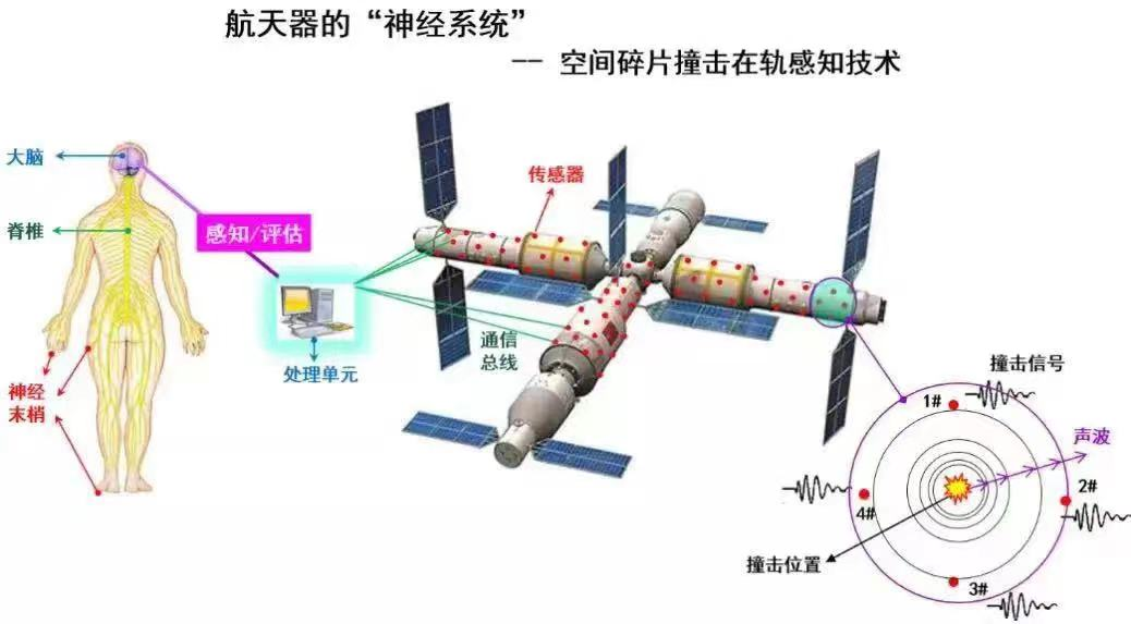 为应对空间碎片威胁,航天公司庞宝君教授团队与北京空间飞行器总体设计部,联合开发了专门针对梦天实验舱结构特点的空间碎片撞击感知技术,并将其应用于梦天实验舱结构健康监测子系统的空间碎片撞击监测模块。 该技术能够对空间碎片撞击事件进行实时感知、判别并定位,为航天员和地面控制人员及时采取应对措施提供依据,保护空间站和航天员安全。