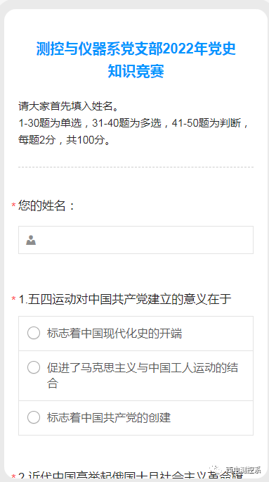 不忘初心向未来 牢记使命新征程---测控与仪器系党支部举办党史知识竞赛